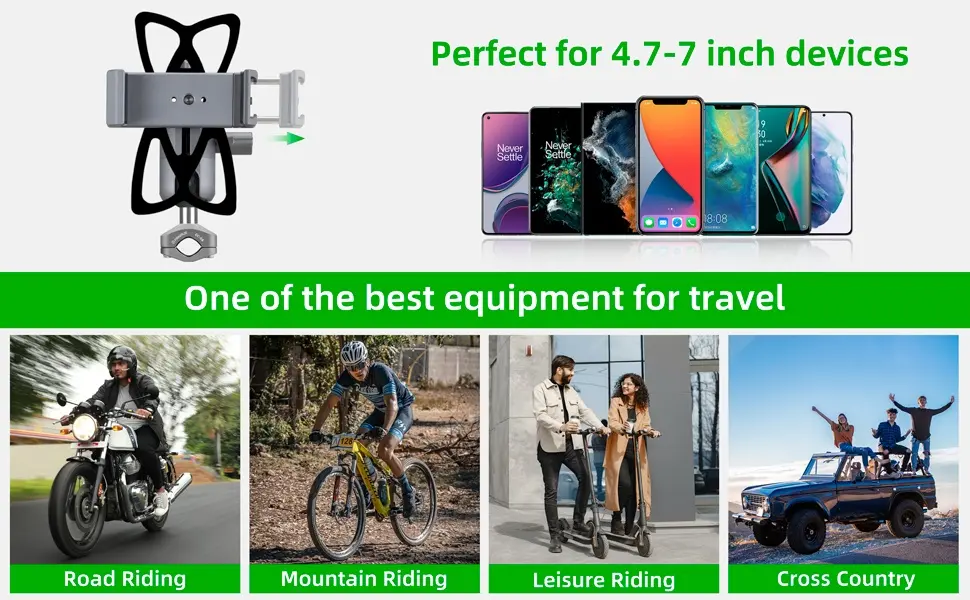 This is a set of high-performance mobile phone holder set suitable for motorcycles, bicycles, ATV/UTV and other vehicles, the parts are all composed of aluminum alloy and stainless steel, and the aluminum alloy is hard anodized to make it stronger.