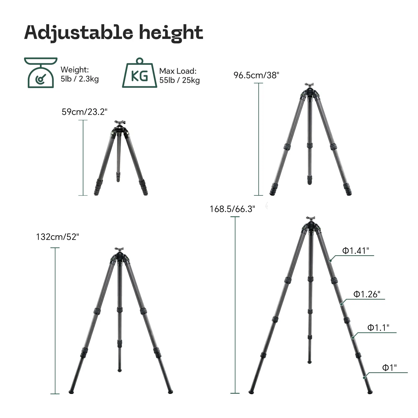 Extension height:168.5cm/66.3"