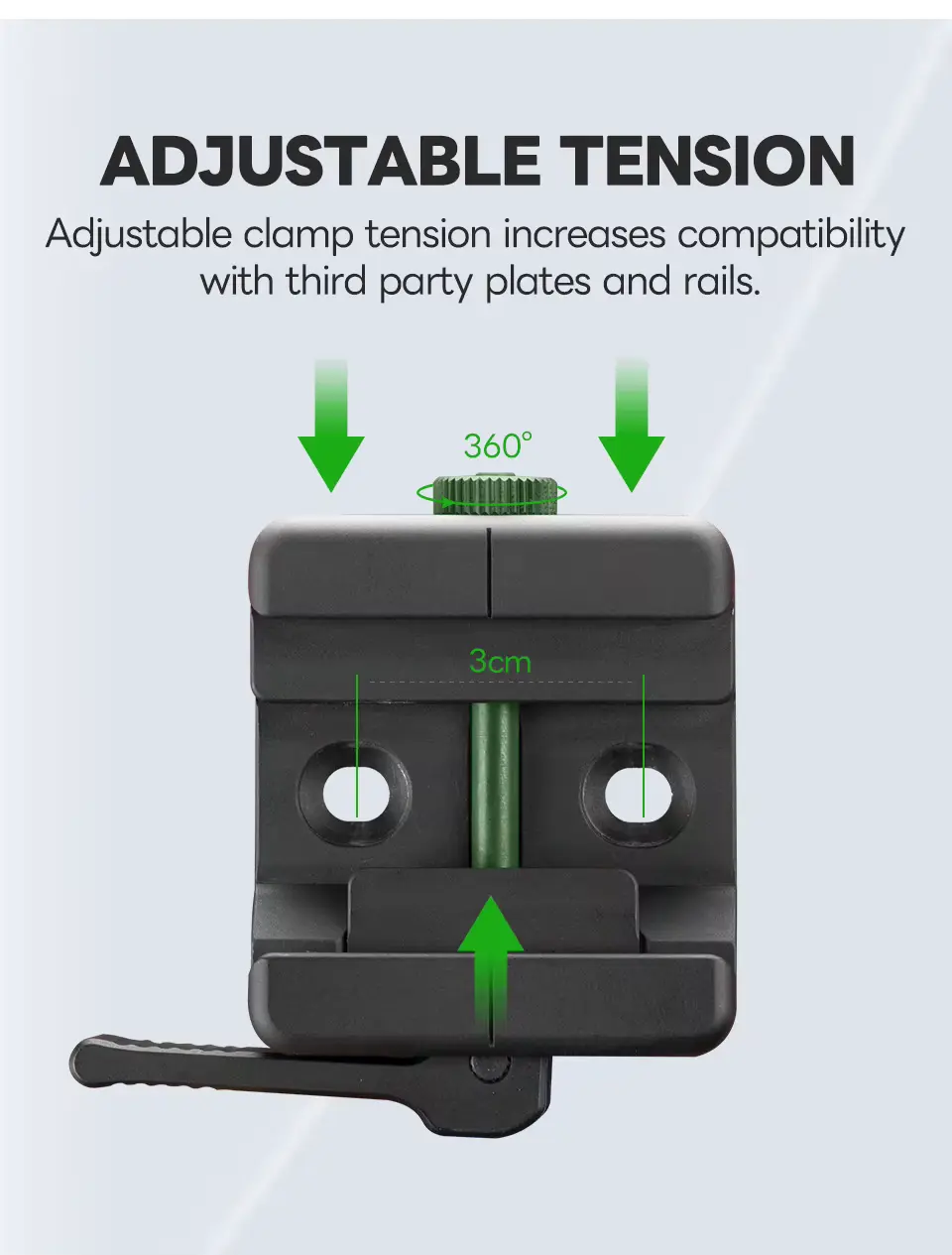 Crafted with meticulous attention to detail, our lever-release clamp ensures swift and secure attachment and detachment, eliminating the need for cumbersome tools or time-consuming adjustments. The quick release mechanism allows you to effortlessly switch between different accessories and platforms, enabling rapid transitions in the field, at the range, or during crucial shooting moments.