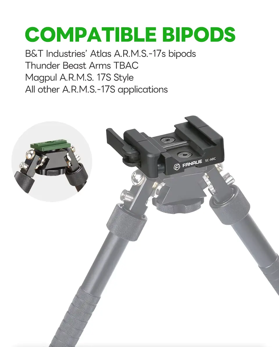 Unlock the full potential of your bipod or tripod setup with the FANAUE Quick Release Lever-Release Clamp. This innovative adapter is designed to seamlessly bridge the gap between the Arca Swiss/RRS Dovetail system and the widely recognized Picatinny rail, providing you with unparalleled compatibility and ease of use.